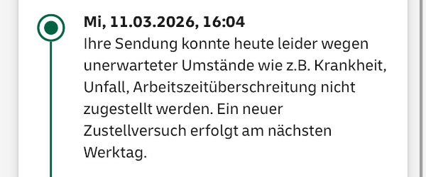 Päckchen: »Schnelle Lieferung (ca. 1-2 Werktage)«. Heute ist aber schon der zehnte Werktag nach dem Versand und ich habe auf ebay eine Gutschrift bekommen. Der Verkäufer bleibt auf dem Schaden sitzen.
