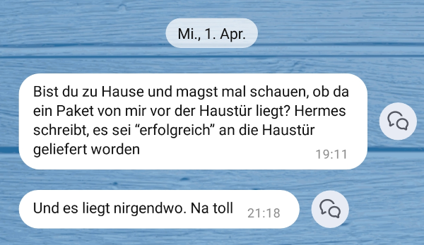 Die Bürokratie für Schadensersatz durch uns an Sie, den Kunden, übersteigt übrigens bewußt um ein Vielfaches Ihren Schaden. Sie werden deswegen nur Abwinken und sich ärgern, aber nicht weiter darum kümmern. Der Sub-Subunternehmer behält dann auch ohne jede Rechenschaft seinen unterbezahlten Job und verkauft sein Diebesgut weiter auf ebay, um überhaupt leben zu können. Aber das liegt ganz klar nicht an uns.